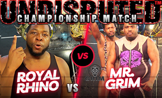 At a prior PPV, Mr. Grim, with his protege and fellow Reaper Renegade, challenges Royal Rhino — who had previously squashed Renegade on two separate occassions — for the Undisputed Championship! Rhino accepts and the battle is utterly epic! Overwhelming power in both directions plus Renegade in Grim’s corner but will he be a help or a hindrance? Watch!